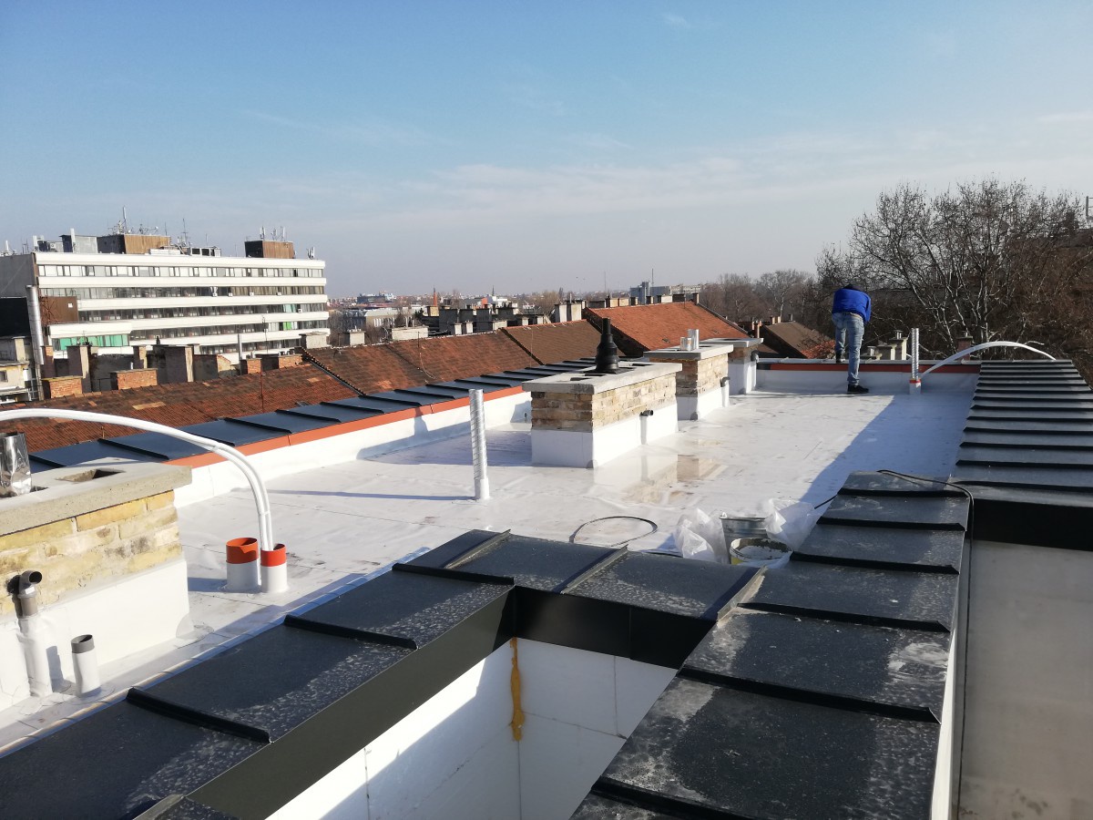 Miből is áll egy ilyen felújítás? Az energetikai felújítások egyik kulcseleme a tető hőszigetelésének növelése. Sok régebbi társasház lapostetőjén a hőszigetelés vastagsága ma már nem felel meg a korszerű energetikai követelményeknek. A felújítás során ezért gyakran új hőszigetelő réteg kerül a meglévő szerkezet fölé. A Fatrafol PVC vízszigetelő rendszerek jól alkalmazhatók ilyen rétegrendekben, mivel mechanikai rögzítéssel vagy leterheléssel is kialakíthatók, így rugalmasan illeszkednek a különböző felújítási megoldásokhoz. A jelen kori társasházak lapostetői nem puffer, hanem igenis hasznosított terek. Egyre gyakoribbak a napelemes rendszerek, klímaberendezések, hőszivattyúk vagy egyéb gépészeti berendezések. Ezek a rendszerek plusz terhelést és számos tetőáttörést jelentenek, ami komoly kihívás a vízszigetelés számára. A Fatrafol PVC lemezek egyik nagy előnye, hogy a forró levegővel hegesztett varrataik homogén és tartós kötést biztosítanak, így a különböző csomópontok, rögzítések és áttörések körül is megbízható vízhatlan kapcsolat alakítható ki. A napelemes rendszerek terjedése új szempontokat hozott a tetőfelújításokba. A tartószerkezetek rögzítése vagy leterhelése során fontos, hogy a vízszigetelés ellenálljon a mechanikai igénybevételnek, valamint hosszú távon is megőrizze rugalmasságát. Itt pedig nem elég a telepíteni kívánt rendszerre gondolni, meg kell emlékezni a karbantartás igényéről, a tetőn dolgozó szakágak munkájából származó folyamatos terhelésről. PVC lemezek jó mechanikai tulajdonságai és UV-állósága lehetővé teszik, hogy a tető hosszú időn keresztül stabil alapot biztosítson az ilyen rendszerek számára. Ha ekkora a forgalom a tetőn, a „nem járható” lapostető hogyan bírja a gyűrődést? A kifejezés arra utal, hogy nem a mindennapi lakossági forgalomra tervezünk és alapvetően a lakosság biztonsága nem garantált ezeken a zuhanásveszélyes felületeken a korlátok vagy mellvéd hiányában. A tetők tehát a szakági kivitelezők munkavégzését lehetővé tetszik, megfelelő munkabiztonsági rendszerek alkalmazása mellett. Felújítási projektekben különösen fontos a kivitelezés biztonsága is. A társasházak többsége a munkák ideje alatt lakott épület marad, ezért a tetőn végzett munkák során minimalizálni kell a kockázatokat. Beleértve a szakemberek biztosítását, a leeső tárgyakkal szembeni védelmet, illetve a tűzbiztonságot. A Fatrafol PVC vízszigetelő lemezek forró levegős hegesztéssel kerülnek beépítésre, így nincs szükség nyílt láng használatára. Ez jelentősen csökkenti a tűzveszélyt, ami lakott épületek felújításánál kiemelten fontos szempont. Még egy szempont… Az energetikai korszerűsítések kapcsán egyre nagyobb figyelmet kap a tetőfelületek hővisszaverő képessége, amelyet a Solar Reflectance Index (SRI) érték jellemez. A magas SRI értékű, világos színű PVC vízszigetelő lemezek – mint amilyenek a Fatrafol rendszerek is – képesek a napsugárzás jelentős részét visszaverni, miközben kevés hőt nyelnek el. Ennek köszönhetően a tető felületi hőmérséklete nyári időszakban akár több tíz Celsius-fokkal is alacsonyabb lehet egy sötét tetőhöz képest. Ez nemcsak a tetőszerkezet hőterhelését csökkenti, hanem az épület felső szintjeinek felmelegedését is mérsékli. A gyakorlatban ez kedvezőbb belső komfortot, valamint alacsonyabb hűtési energiaigényt jelenthet, ami különösen fontos olyan társasházaknál, ahol a tetőn klímaberendezések vagy egyéb gépészeti rendszerek működnek. A magas SRI értékű tetőfelületek emellett hozzájárulhatnak a városi hősziget-hatás mérsékléséhez is, így a korszerű vízszigetelési rendszerek nemcsak az épület, hanem a tágabb környezet szempontjából is kedvező megoldást jelentenek. Ha kérdés maradt: Kérdezni bármikor lehet. Mi a Fatra Izolfa Zrt. munkatársai továbbra is állunk az önök rendelkezésére és akár személyre, projectre szabottan igyekszünk megoldást találni az egyes burkolási és szigetelés felújítási munkák szakszerű kivitelezésére. Jámbor Zsolt – mérnök szaktanácsadó/ fatrafol / fatrafloor ![]() ![]() Balra: Gépészeti rendszer fogadására előkészített lapostető Fatrafol 810/V lemezzel szigetelve / Jobbra: Társasházi lapostető felújítása megnövelt hővisszaverő képességgel rendelkező Fatrafol PVC vízszigetelő lemezzel |